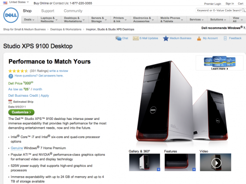 Two (2) new Dell Studio XPS 9100 Desktop computers = $999 each (no monitor). ![]() |